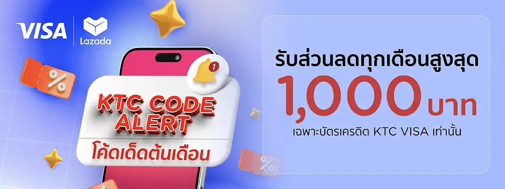 - This promotional campaign (“Promotion”) is provided by Krungthai Card Public Company Limited or KTC to offer the exclusive privileges to members of KTC VISA credit card (“Cardmember(s)”) who spend on card at Lazada on February 1st, 2026 – December 31th, 2026 (“Promotion Period”) according to specified terms and conditions only.