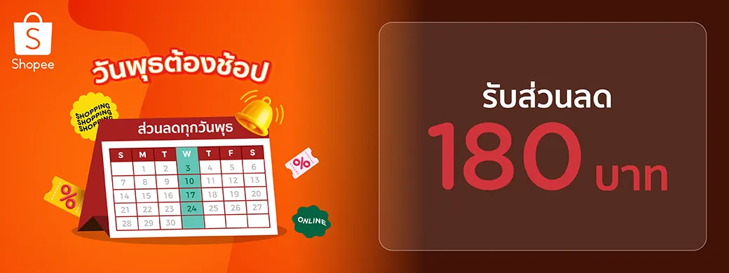 - The cardmembers who shop with the card according to specified conditions via Shopee Mobile Application, cardmembers will get 180 Baht discount every Wednesday when spend at a minimum of 1,600 Baht / transaction and fill in promo code “KTCWED”