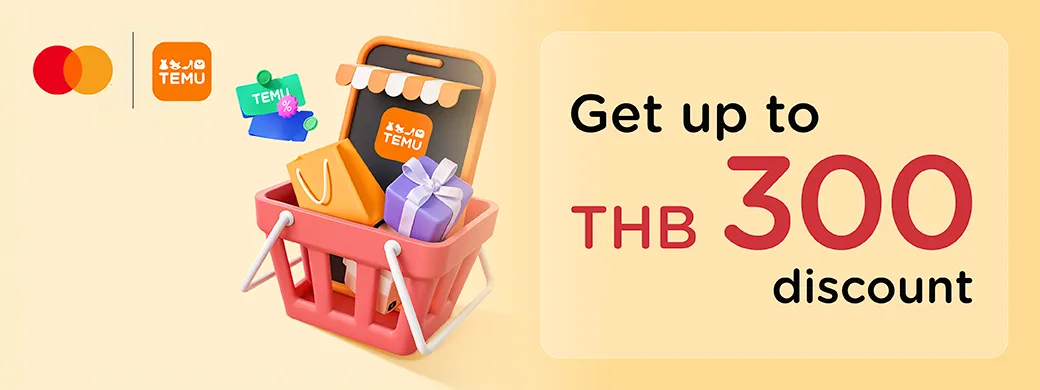 with minimum spending of THB 1,000 or more before make a payment with all types of KTC MASTERCARD credit card or KTC PROUD MASTERCARD cash card on the Temu app here