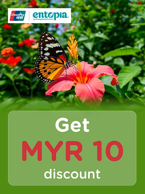 when minimum spending 75 MYR and payment with all types of KTC UNIONPAY credit card or KTC PROUD UNIONPAY cash card at Entopia by Penang Butterfly Farm ticket counter in Malaysia.