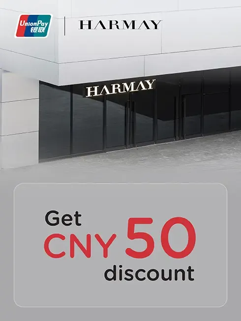 when spending CNY 300 or more/sales slip and scan to pay with all types of KTC UNIONPAY credit card via KTC Mobile app at HARMAY stores in Shanghai, China.
