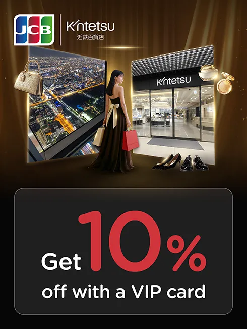 at participating stores in all 8 Kintetsu Department Store locations with a minimum purchase of 2,000 yen (excluding tax) when present your VIP card and pay with all type of KTC JCB credit card.