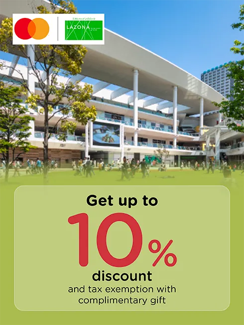 when get coupon here and present to the staff at the information counter and payment with all types of KTC MASTERCARD credit card and KTC PROUD MASTERCARD cash card at Lazona Kawasaki, Japan.