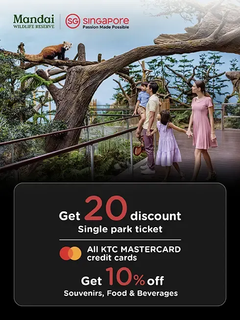 • Discount is not applicable on Breakfast in the Wild experience, KFC, Starbucks, mobile F&B kiosks, F&B tenants at Mandai Wildlife EAST and Mandai Wildlife WEST.