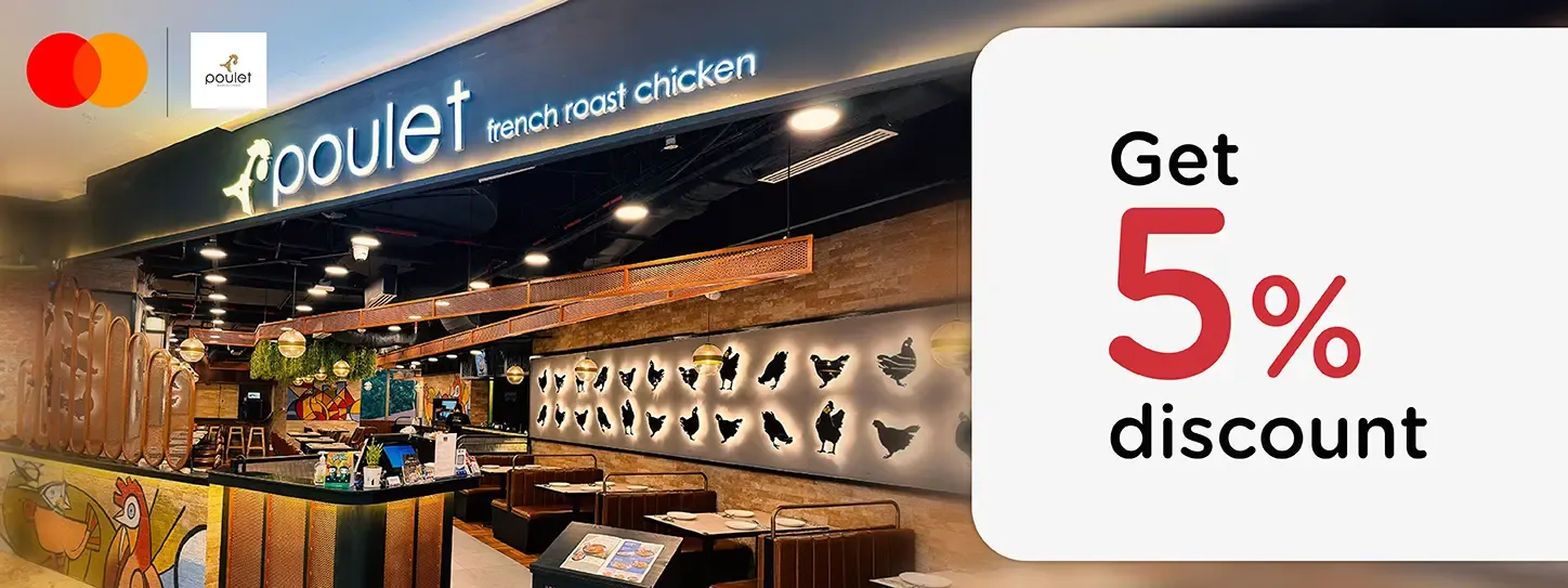 for dine-in only and payment with all types of KTC MASTERCARD credit card and KTC PROUD MASTERCARD cash card at Poulet Myanmar, Myanmar