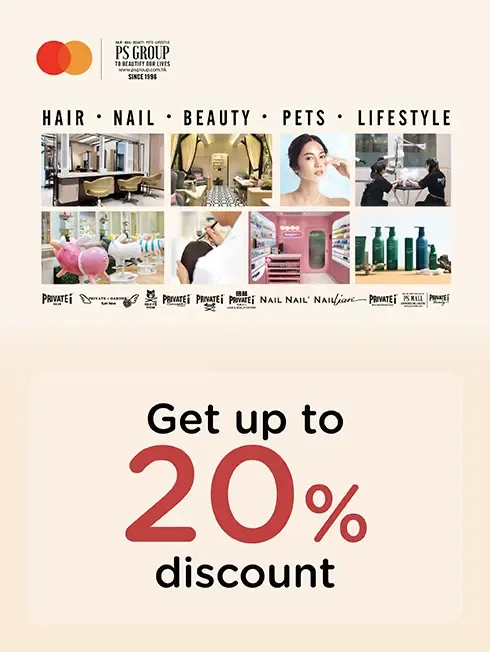 when booking in advance and payment with all types of KTC MASTERCARD credit card and KTC PROUD MASTERCARD cash card at PS Group in Hong Kong.