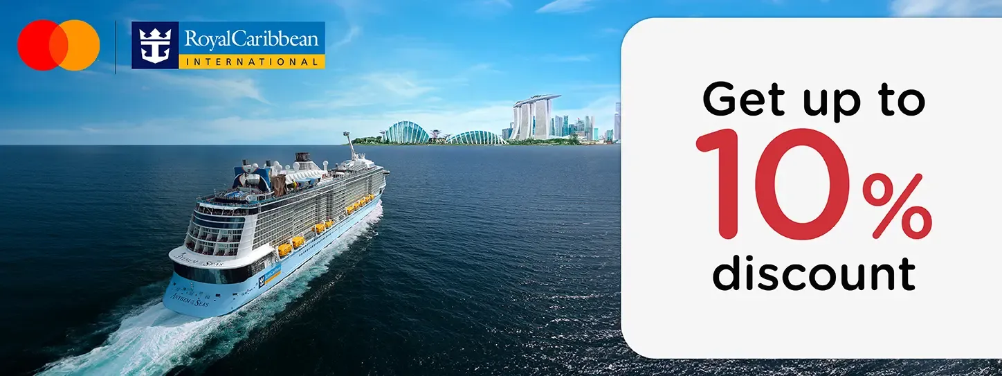 on cruise booking minimum 3 night via email salessg@rcclapac.com and payment with all types of KTC MASTERCARD credit card and KTC PROUD MASTERCARD cash card at Royal Caribbean Cruises.