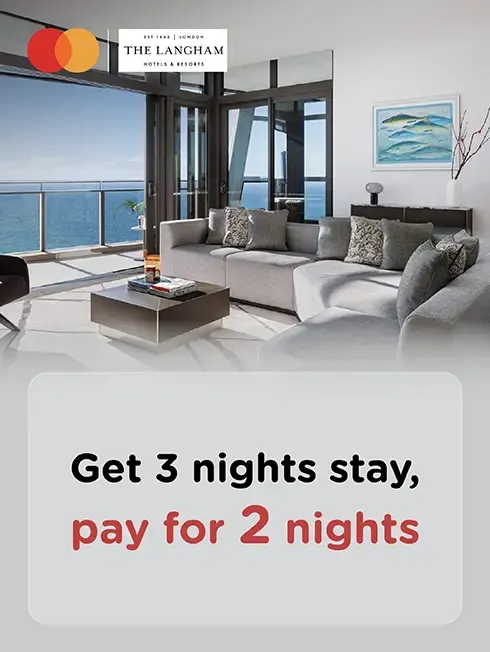 when you booking room in advance through https://ktc.promo/reservation-MCxLangham with promotion code "3HMCLHG" and payment with all types of KTC MASTERCARD credit card and KTC PROUD MASTERCARD cash card at participating The Langham Hotels and Resorts