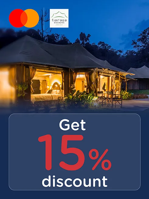 when booking in advance by phone at (+60) 12 887 7777 and payment with all types of KTC MASTERCARD credit card and KTC PROUD MASTERCARD cash card at Tiarasa Escapes Glamping in Malaysia.