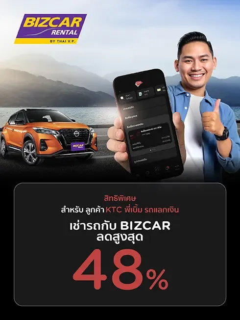 สำรองรถเช่าหรือสอบถามข้อมูลเพิ่มเติมได้ที่ Bizcar โทร. 090 545 6000 กด * LINE : @bizcarrental เพิ่มเพื่อน FACEBOOK : bizcarrentalclub สมาชิกจะได้รับส่วนลดตามที่กำหนด เมื่อแสดงหน้าบัญชีสินเชื่อ KTC พี่เบิ้ม รถแลกเงิน บนแอป KTC Mobile เพื่อยืนยันการรับสิทธิประโยชน์กับเจ้าหน้าที่สาขาของร้านค้า ในวันที่รับรถ