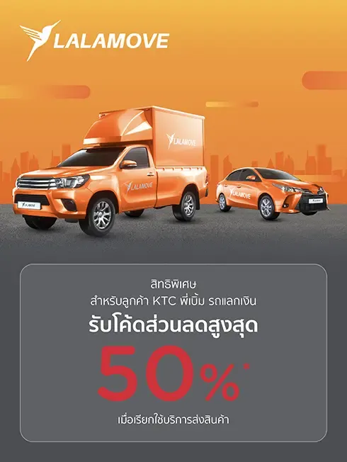 - ลด 50% สูงสุด 90 บาท สำหรับออเดอร์ส่งสินค้าด้วยรถยนต์ทุกประเภท