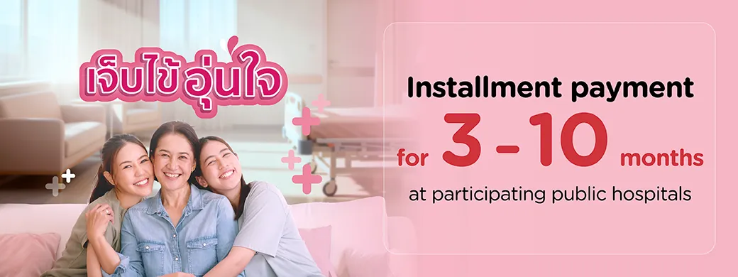 Call KTC PHONE 02 123 5000 press 4 to convert the spending amount at public hospitals to installment payment.