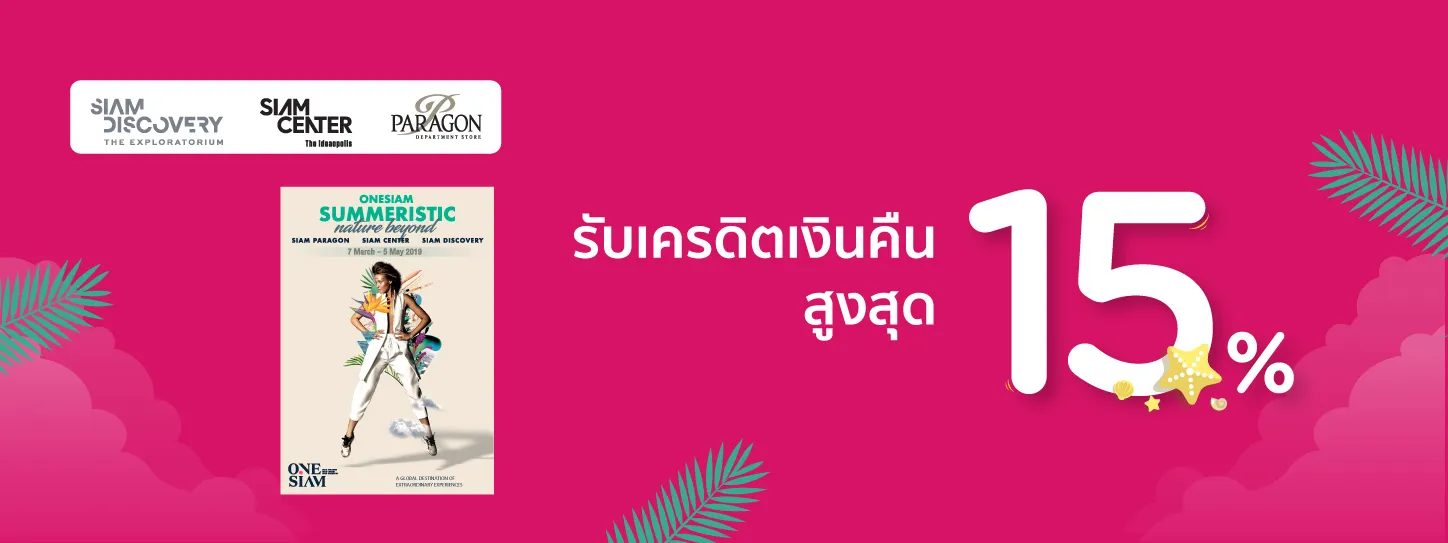 Enjoy Points for Cash Back redemption when you shop with KTC CREDIT CARDS at rental shops in Siam Discovery, Siam Center, Siam Paragon and use KTC FOREVER points equal to spending/sale slip.