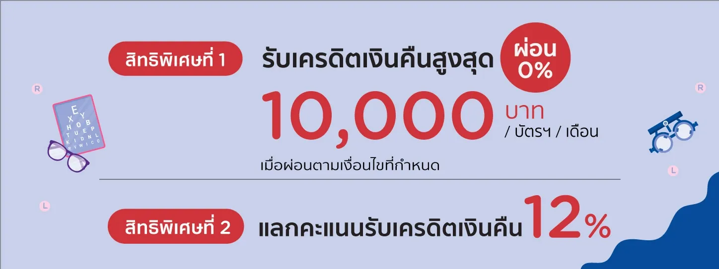 Enjoy 0% installment payment from 3 to 10 months and receive credit cash back per month up to 10,000 Baht per card