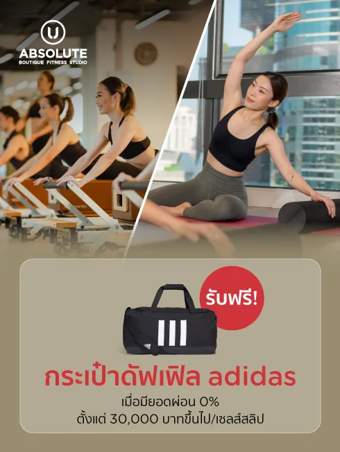 When spending via KTC VISA credit card 0%* installment payment, amount of 30,000 baht or more per sales slip, Get 1 adidas duffle premium bag value 1,600 baht.