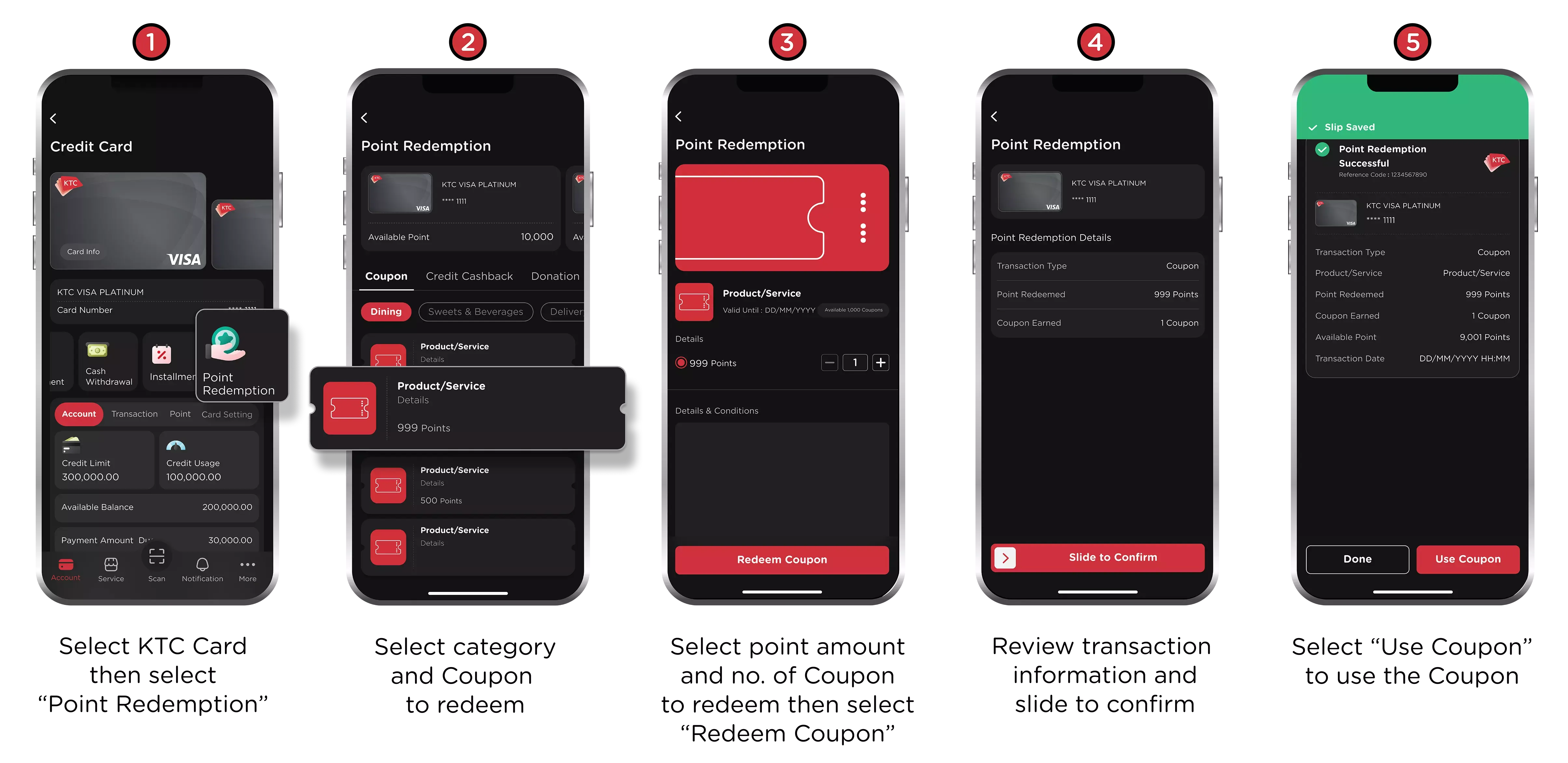 When using KTC FOREVER points +Credit, redeem an e-Coupon for a discount on participating products via the card.
