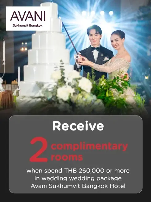 Receive additonal two complimentary accommodations in Superior room inclusive of breakfast for 2 persons on the wedding day when spend THB 260,000 net or more in wedding package within 3 sales slip.