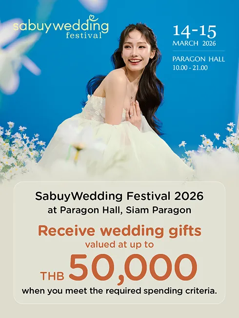 SabuyWedding Festival 2026, the leading wedding fair in Thailand will be held on 14 - 15 March 2026 from 10.00 – 21.00 hrs. at Paragon Hall, Siam Paragon. The exhibition will feature over 200 wedding vendors ranging from bridal shops, hotels, restaurants, jewelry shops, to wedding planners.