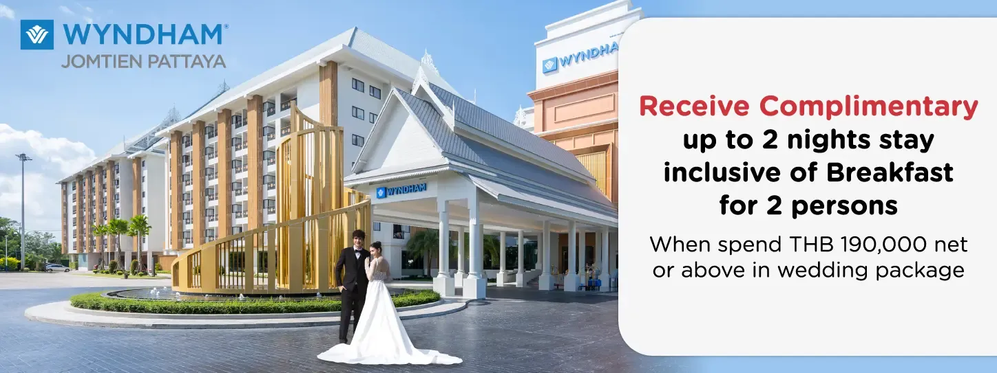 - Receive 1 night stay in Superior Room inclusive of breakfast for 2 persons when spend THB 190,000 net or above in wedding package.