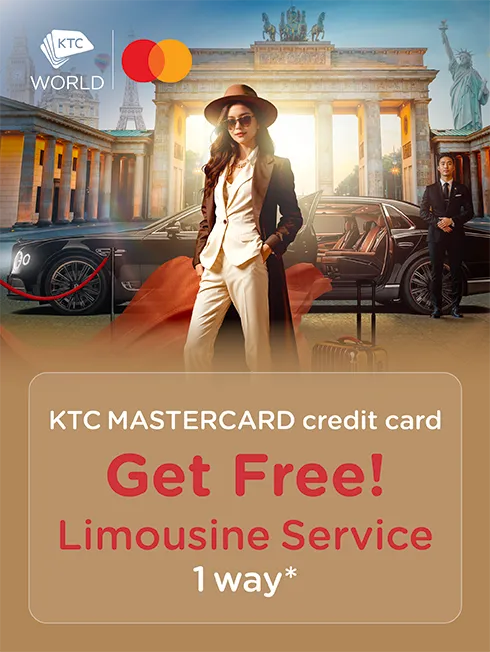 Pick up or drop off at Don Mueang Airport or Suvarnabhumi Airport (only in Bangkok and Nearby areas) when spending via KTC MASTERCARD credit card of 50,000 baht or more/sales slip at KTC WORLD via Call Center or book air tickets online easily by clicking https://ktc.promo/air-ticket-booking