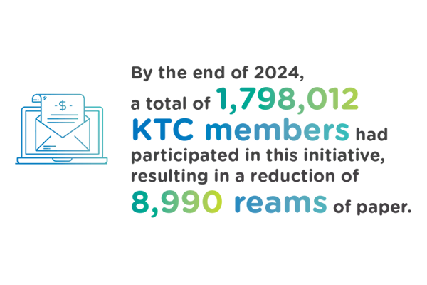 KTC is committed to embedding environmental stewardship within its operational processes, aligning with the Company’s sustainability strategies. The Environmental Policy, incorporated in the Code of Conduct, provides clear directives to ensure that all operational activities comply fully with applicable environmental regulations and international standards. It also promotes a culture of environmental awareness among employees. The General Service Unit and Building Management Unit are accountable for overseeing waste and water management performance. The units are also responsible for executing targeted environmental initiatives to mitigate risks, enhance resource efficiency, and support the achievement of the Company’s long-term strategic goals.