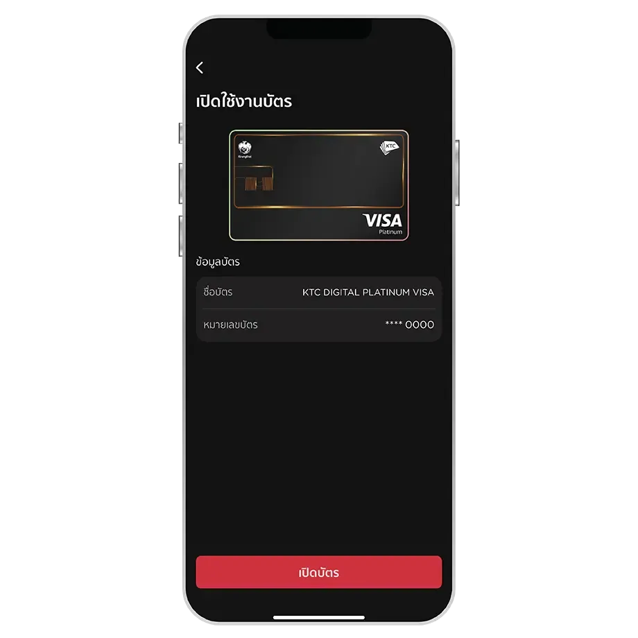 สามารถเปิดใช้งานบัตรโดยทำการเปิดการใช้งานวงเงินสำหรับธุรกรรมไม่แสดงบัตรผ่านแอป KTC Mobile และสามารถนำบัตรไปใช้งานได้ทันที