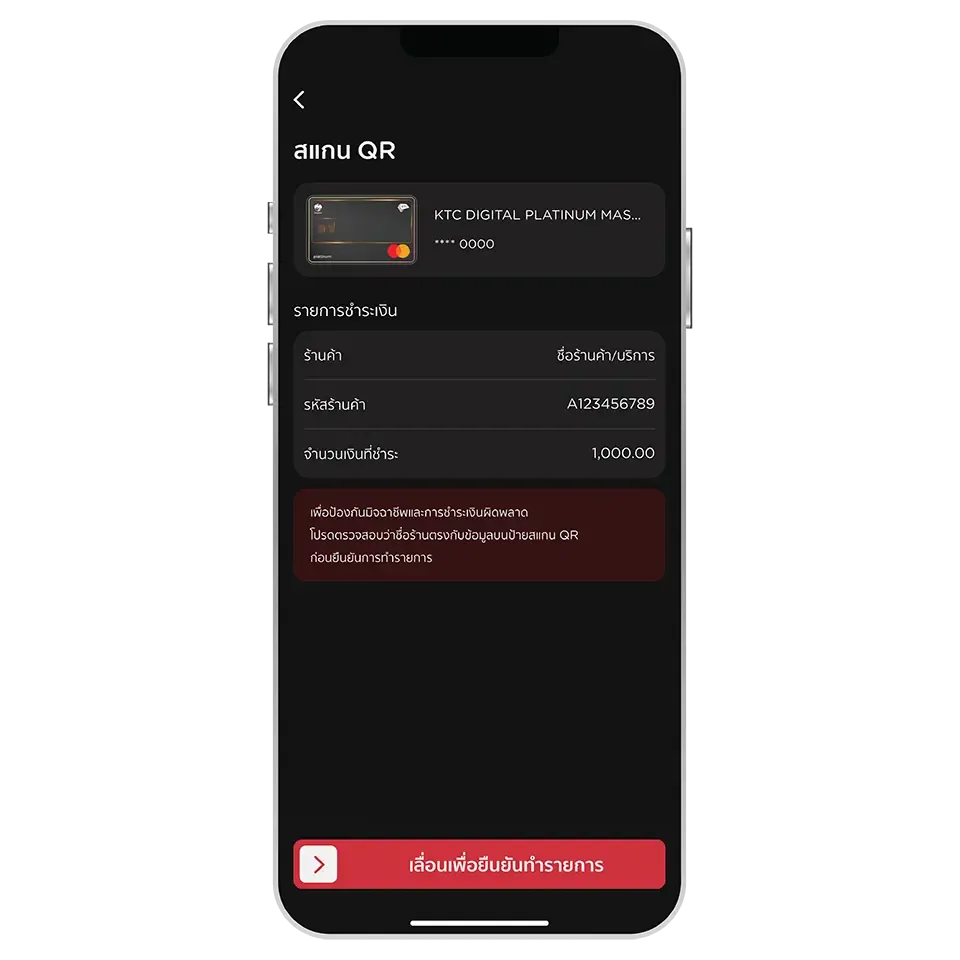 บัตรเครดิต KTC VISA, KTC MASTERCARD และ KTC UNIONPAY ทุกประเภทสามารถชำระผ่าน QR Pay ได้