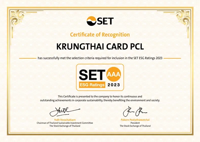 “เคทีซี”หรือบริษัท บัตรกรุงไทย จำกัด (มหาชน)แจ้งว่าเคทีซีได้รับการประเมิน SET ESG Rating ระดับเรตติ้งสูงสุด AAA ในกลุ่มธุรกิจการเงิน และเป็นสมาชิกของดัชนี SETTHSI เป็นปีที่ 3 ติดต่อกัน ซึ่งสะท้อนความมุ่งมั่นในการพัฒนาองค์กรให้เติบโตอย่างแข็งแกร่งและยั่งยืน พร้อมรับการเปลี่ยนแปลง และให้ความสำคัญกับการมีส่วนร่วมของผู้มีส่วนได้เสียทุกภาคส่วน โดยเคทีซีจะมุ่งพัฒนาการดำเนินงานด้านความยั่งยืนในทุกมิติ โดยคำนึงถึงสิ่งแวดล้อม มีความรับผิดชอบต่อสังคม และมีการบริหารงานตามหลักบรรษัทภิบาลที่ดี (Environmental, Social and Governance: ESG) เพื่อสร้างความเชื่อมั่นต่อนักลงทุนต่อไป