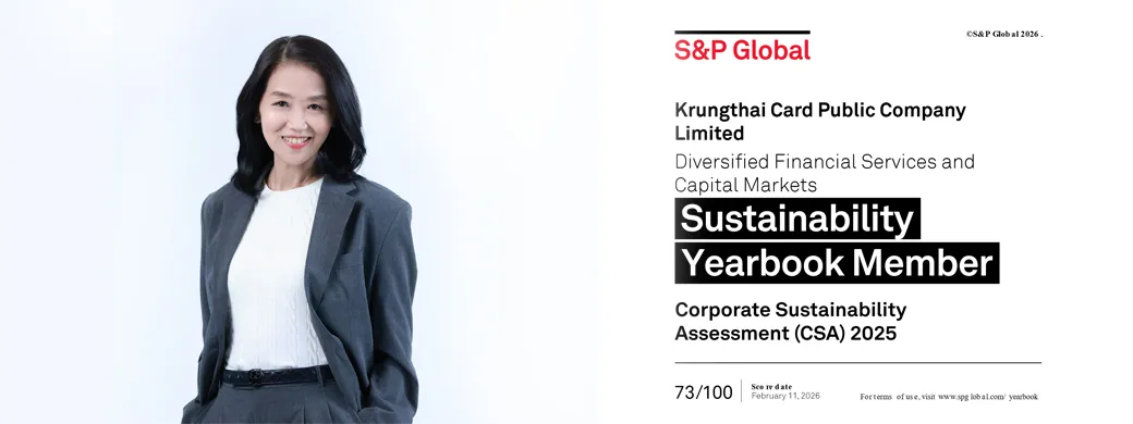 เคทีซีได้รับคัดเลือกเข้าสู่ทำเนียบ S&P Global Sustainability Yearbook 2026 ต่อเนื่องเป็นปีที่ 3 พร้อมสถานะบริษัทไทยเพียงรายเดียวในอุตสาหกรรมบริการทางการเงินแบบครบวงจรและตลาดทุน (Diversified Financial Services and Capital Markets) อีกทั้งยังมีคะแนนอยู่ในกลุ่ม 15% อันดับสูงสุดของอุตสาหกรรม จากบริษัทที่เข้าร่วมการประเมินทั่วโลกจำนวน 848 บริษัท สะท้อนศักยภาพด้านความยั่งยืนขององค์กร