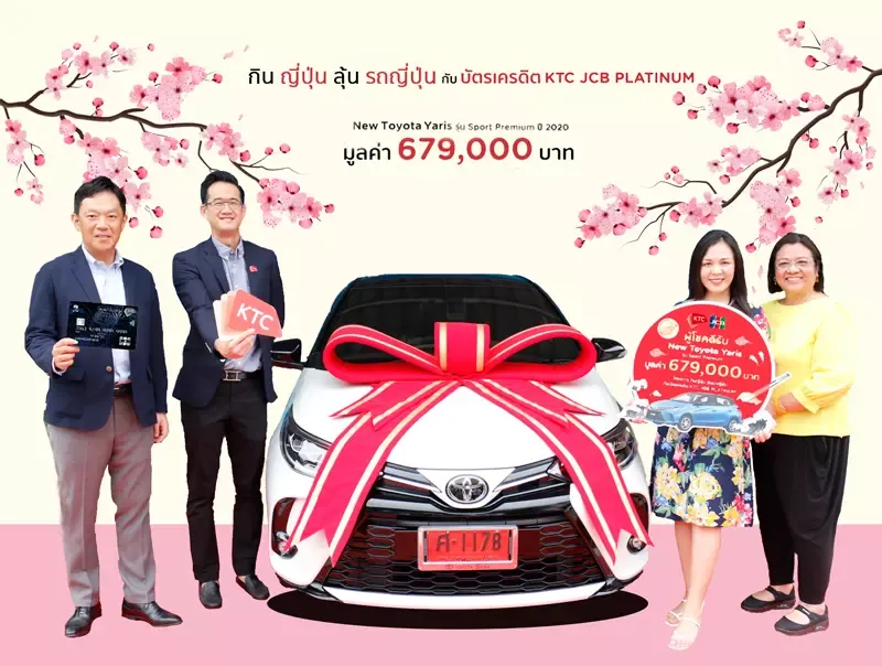 นายธศพงษ์ รังควร(คนที่ 2 จากซ้าย) ผู้อำนวยการ – ธุรกิจบัตรเครดิต“เคทีซี”หรือบริษัท บัตรกรุงไทย จำกัด (มหาชน)ร่วมกับนายเรียว โมริตะ(คนที่ 1 จากซ้าย)กรรมการผู้จัดการ บริษัท เจซีบี อินเตอร์เนชั่นแนล (ประเทศไทย) จำกัดมอบรางวัล Toyota Yaris Sport Premium ปี 2020 มูลค่า 679,000 บาท ให้กับสมาชิกผู้โชคดีจากแคมเปญ“กินญี่ปุ่น ลุ้นรถญี่ปุ่น กับบัตรเครดิต เคทีซี เจซีบี แพลทินัม”คุณหริศา เอี่ยมสอาด(คนที่ 2 จากขวา)ที่โชว์รูมโตโยต้า สยามออโต้ ซาลอน สาขาสุขาภิบาล 5เร็วๆ นี้