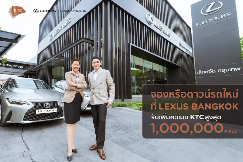 เคทีซีร่วมกับเล็กซัส กรุงเทพ (LEXUS BANGKOK) จัดแคมเปญครั้งประวัติศาสตร์ ในโอกาสที่ LEXUS BANGKOK ครบรอบ 30ปี หวังขยายฐานเข้าถึงกลุ่มลูกค้าระดับพรีเมี่ยม มอบคะแนนKTC FOREVERสูงสุดถึง 1 ล้านคะแนน เมื่อจองหรือดาวน์รถLEXUSรุ่น IS หรือ UX และชำระด้วยบัตรเครดิตเคทีซีเป็นจำนวนเงิน 1 ล้านบาทระหว่างวันที่15 สิงหาคม 2566–31 มกราคม 2567