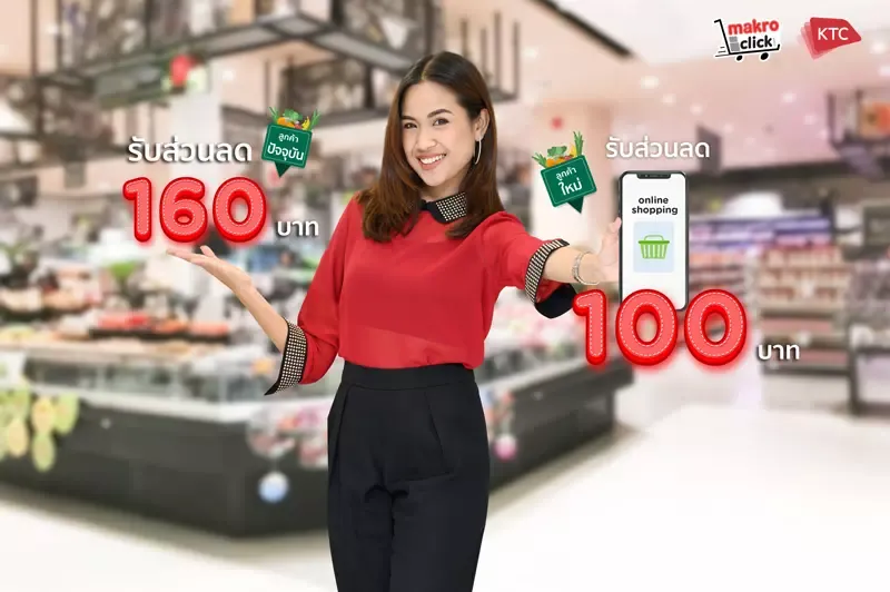 “เคทีซี”หรือบริษัท บัตรกรุงไทย จำกัด (มหาชน)มอบสิทธิพิเศษให้สมาชิกบัตรเครดิตเคทีซี ช้อปสุดคุ้มกับสินค้าครบครัน พร้อมบริการจัดส่งถึงบ้าน ที่“MakroClick”ผ่านช่องทางเว็บไซต์www.makroclick.comและแอปพลิเคชัน“Makro”ดังนี้ 1)รับส่วนลด100 บาทสําหรับสมาชิกบัตรฯ ที่ช้อปผ่านช่องทางออนไลน์ครั้งแรก 2,000 บาทขึ้นไปต่อเซลส์สลิป โดยสมาชิกกรอกโค้ดktc1nก่อนการชําระเงินเพื่อรับสิทธิ์ (จำกัด 1 สิทธิ์ต่อสมาชิก 1 ท่าน ตลอดระยะเวลารายการ) 2)รับส่วนลด160 บาทเมื่อใช้จ่ายผ่านบัตรฯ 4,000 บาทขึ้นไปต่อเซลส์สลิป โดยสมาชิกกรอกโค้ดktc6eก่อนการชําระเงินเพื่อรับสิทธิ์ (จํานวนจำกัด)ตั้งแต่วันที่ 1 พฤษภาคม2564 –วันที่31ตุลาคม 2564