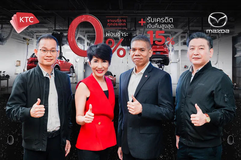(ในภาพจากซ้ายไปขวา) นายวิชัย ลิ้มวงศ์รุจิรัตน์ ผู้อำนวยการงานการจัดการหลังการขายผู้จำหน่ายกรุงเทพฯ นางประณยา นิถานานนท์ ผู้ช่วยประธานเจ้าหน้าที่บริหาร – ธุรกิจบัตรเครดิต “เคทีซี” ดร.ปณัสย์ บุญค้ำ รองประธานฝ่ายบริการหลังการขาย “มาสด้า” และนายศราวุฒิ บรรยงค์กุล ผู้อำนวยการงานการจัดการหลังการขายผู้จำหน่ายต่างจังหวัด บริษัท มาสด้า เซลส์ (ประเทศไทย) จำกัด