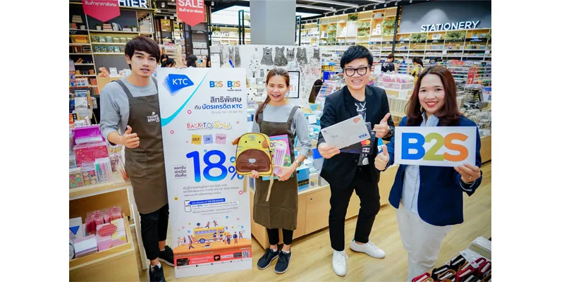 นายธีรพจน์ โชคอนันตัง ผู้ช่วยประธานเจ้าหน้าที่บริหาร - ธุรกิจบัตรเครดิต เคทีซี” หรือ บริษัท บัตรกรุงไทย จำกัด (มหาชน)  ร่วมกับนางมัลลิกา เหลืองนิมิตมาศ ผู้ช่วยกรรมการผู้จัดการใหญ่ ฝ่ายการตลาด บริษัท บีทูเอส จำกัด  มอบสิทธิพิเศษต้อนรับเปิดเทอม มอบเครดิตเงินคืนสูงสุด 18% เมื่อซื้อหนังสืออุปกรณ์เครื่องเขียน และชำระด้วยบัตรเครดิตเคทีซี พร้อมใช้คะแนน KTC FOREVER เท่ายอดใช้จ่ายต่อเซลส์สลิป และลงทะเบียนผ่าน SMS พิมพ์ B2S เว้นวรรค ตามด้วยหมายเลขบัตรเครดิต 16 หลัก ตามด้วยเครื่องหมาย # และยอดใช้จ่ายต่อเซลส์สลิป ส่งมาที่เบอร์โทรศัพท์ 061-384-5000 ตั้งแต่วันที่ 19 เมษายน 2562 ถึง 31 พฤษภาคม 2562 นอกจากนี้สมาชิกยังมีสิทธิได้รับการลดหย่อนทางภาษี เมื่อช้อปสินค้าเกี่ยวกับการศึกษาภายในร้านค้าและออกใบกำกับภาษีตามที่รัฐกำหนด โดยสามารถรวมบิลใบเสร็จได้ไม่เกิน 15,000 บาท ตั้งแต่วันที่ 1 พฤษภาคม 2562 ถึง 30 มิถุนายน 2562