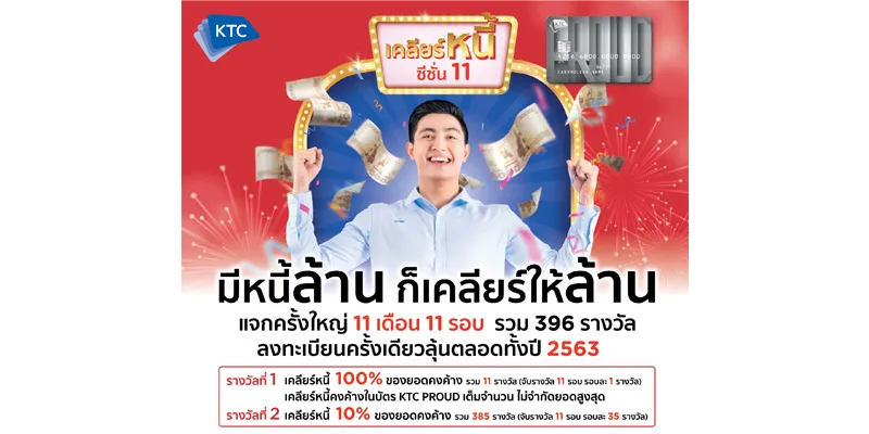 นางสาวพิชามน จิตรเป็นธรรม  ผู้อำนวยการ– ธุรกิจสินเชื่อบุคคล“เคทีซี”หรือบริษัท บัตรกรุงไทย จำกัด (มหาชน)เปิดแคมเปญเสริมสร้างวินัยในการใช้จ่ายครั้งใหม่“เคลียร์หนี้” ซีซั่น11ให้สมาชิกบัตรกดเงินสด “เคทีซี พราว”ที่มีประวัติการชำระดี รับโอกาสลุ้นแบ่งเบาและปลดภาระหนี้ที่มีอยู่ถึง11 เดือน 11 รอบ รวม 396 รางวัลโดยลงทะเบียนครั้งเดียวสามารถลุ้นรับรางวัลได้ตลอดปี 2563รางวัลที่ 1 มี 11 รางวัลรับการเคลียร์หนี้คงค้างในบัตร “เคทีซี พราว” เต็มจำนวนไม่จำกัดยอดสูงสุด (จับรางวัล 11 รอบๆ ละ 1 รางวัล)รางวัลที่2  มี 385 รางวัลรับการเคลียร์หนี้ 10% ของยอดคงค้าง (จับรางวัล 11 รอบๆ ละ 35 รางวัล) โดยสามารถลงทะเบียนรับสิทธิ์เข้าร่วมแคมเปญฯ ได้หลายช่องทางตั้งแต่วันที่1 มกราคม 2563 – 31 ธันวาคม2563SMSพิมพ์ OK  เว้นวรรค ตามด้วยหมายเลขบัตรกดเงินสดฯ 16 หลัก ส่งไปที่ 061-384-5000ลงทะเบียนออนไลน์ฟรีที่ www.ktc.co.th/cleardebt10 หรือลงทะเบียนที่ศูนย์บริการลูกค้า”เคทีซี ทัช” ทุกสาขา โดยสมาชิกจะได้รับ 1 สิทธิ์ลุ้น เมื่อมียอดเงินต้นคงค้างเพิ่มขึ้นทุกๆ 2,000 บาท เมื่อเทียบกับรอบบัญชีก่อนหน้า และคงค้างทุกวันอย่างน้อย 15 วันจนถึงวันสรุปรอบบัญชี ลงทะเบียนก่อน มีสิทธิ์ลุ้นเคลียร์หนี้ก่อน