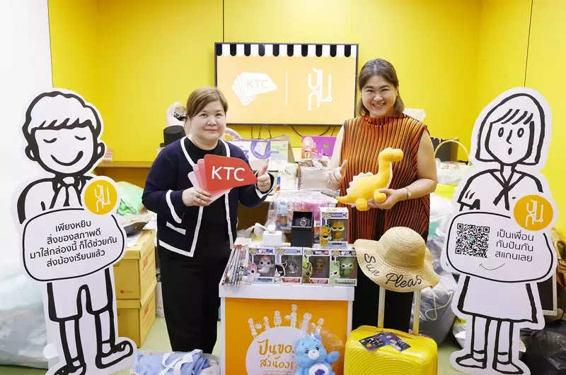 นางสาวปิยะสุดา แคว้นนนทรีย์(ซ้าย)ผู้บริหารสูงสุด สายงานทรัพยากรบุคคล “เคทีซี”หรือบริษัท บัตรกรุงไทย จำกัด (มหาชน)จัดโครงการ “เคลียร์บ้านได้บุญ” เปลี่ยนสิ่งของที่ไม่ได้ใช้ เป็นโอกาสทางการศึกษาให้เด็กที่ขาดโอกาสในมูลนิธิยุวพัฒน์ โดยเป็นตัวแทนส่งมอบของเหลือใช้ สภาพดี ซึ่งผู้บริหารและพนักงานเคทีซีร่วมกันบริจาค อาทิ เสื้อผ้า กระเป๋า รองเท้าและสิ่งของอื่นๆ ให้กับนางฐาปนีย์ สินาดโยธารักษ์(ขวา)ผู้อำนวยการ ร้านปันกัน มูลนิธิยุวพัฒน์เพื่อนำไปเป็นสินค้าให้ “ร้านปันกัน” ได้จำหน่ายและเปลี่ยนเป็นทุนการศึกษาให้เด็กที่ขาดโอกาสได้พัฒนาคุณภาพชีวิตให้ดียิ่งขึ้น