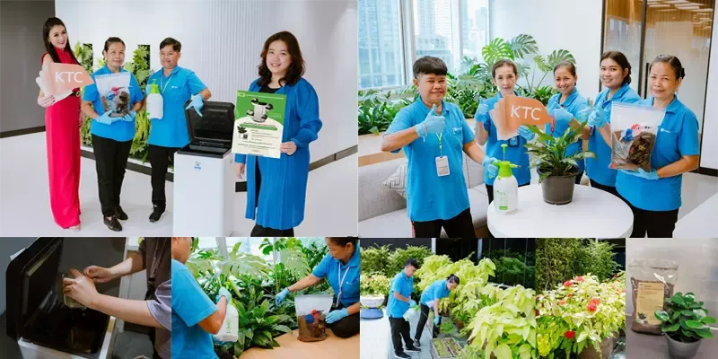 นางสาวดวงกมล อินทรพราหมณ์(ขวา) ผู้อำนวยการ – บริหารเงินและการพัฒนาเพื่อความยั่งยืน“เคทีซี”หรือบริษัท บัตรกรุงไทย จำกัด (มหาชน)เผยว่า “เคทีซีได้ขับเคลื่อนนโยบายในการดำเนินธุรกิจ โดยคำนึงถึงมิติเศรษฐกิจ สังคมและสิ่งแวดล้อม โดยล่าสุดเพื่อขานรับนโยบายเรื่อง Zero Waste หรือ “แนวคิดขยะเป็นศูนย์” จึงได้ติดตั้งเครื่องกำจัดเศษอาหารภายในเคทีซี เพื่อแปรรูปขยะอาหารให้เป็นปุ๋ยอินทรีย์คุณภาพสูงด้วยการใช้จุลินทรีย์ย่อยสลาย ซึ่งสามารถลดปริมาณขยะจากอาหารเหลือทิ้งได้ 80-90% ภายในเวลา 24 ชั่วโมง โดยปุ๋ยอินทรีย์ที่ได้จากเครื่องกำจัดเศษอาหารนี้จะมอบให้พนักงาน และใช้บำรุงรักษาต้นไม้ภายในบริษัทฯ ซึ่งนอกจากจะช่วยลดปริมาณขยะแล้ว ยังสามารถลดภาระการจัดการขยะ และส่งเสริมการลดปริมาณก๊าซเรือนกระจกที่ทำให้เกิดภาวะโลกร้อนหรือโลกรวนอีกด้วย
