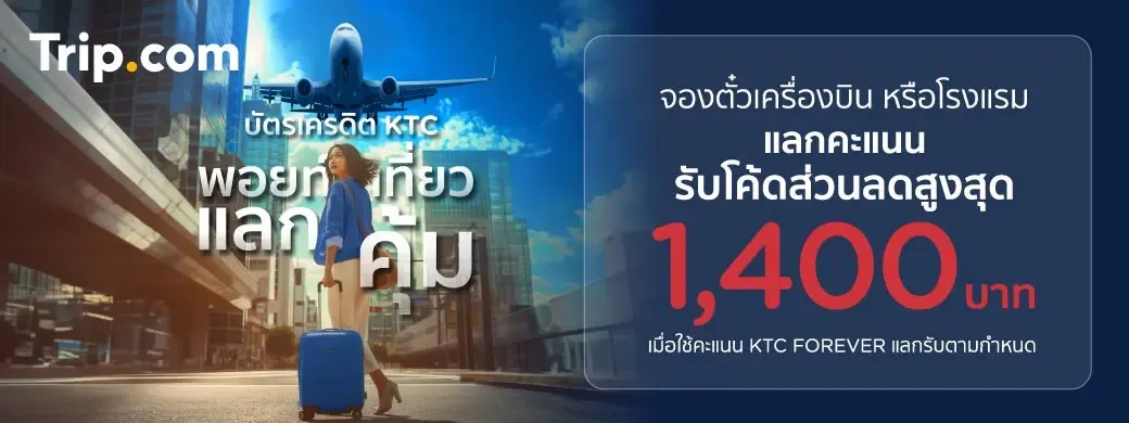เพียงใช้จ่ายที่ Trip.com และใช้คะแนน KTC FOREVER เท่ายอดใช้จ่ายผ่านบัตรฯ/เซลส์สลิป