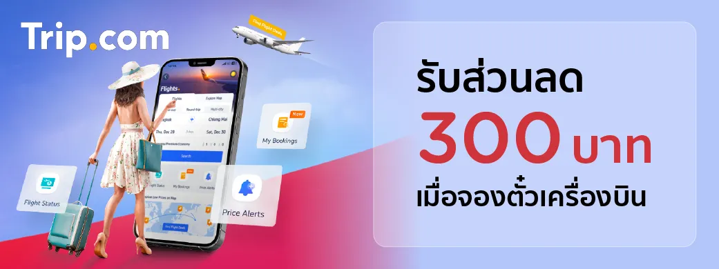 เที่ยวบิน: สมาชิก Trip.com รับส่วนลด 300 บาท รหัสโปรโมชั่นส่วนลดเที่ยวบินใช้ได้สำหรับเที่ยวบินที่เดินทางไป-กลับต่างประเทศ (โดยไม่รวมการเดินทางขาเดียว) ของทุกสายการบิน (ยกเว้นเส้นทางภายในประเทศจีน) โดยสามารถใช้เป็นลดค่าตั๋วเครื่องบินคำนวนจากราคากหลังรวมภาษีและค่าธรรมเนียม ไม่รวมค่าใช้จ่ายเพิ่มเติมอื่นๆ เช่น ภาษี ค่าธรรมเนียมสัมภาระเพิ่มเติม และค่าประกันภัย