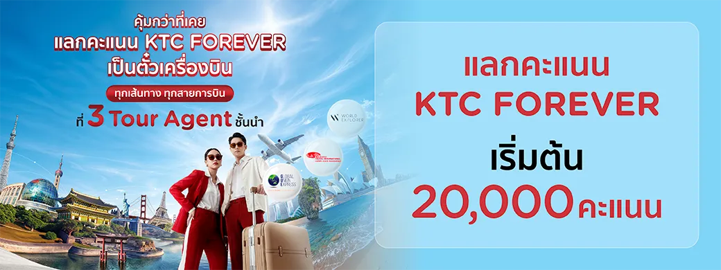 ใช้คะแนน KTC FOREVER แลกตั๋วเครื่องบินได้ทุกเส้นทาง กับบัตรเครดิต KTC
