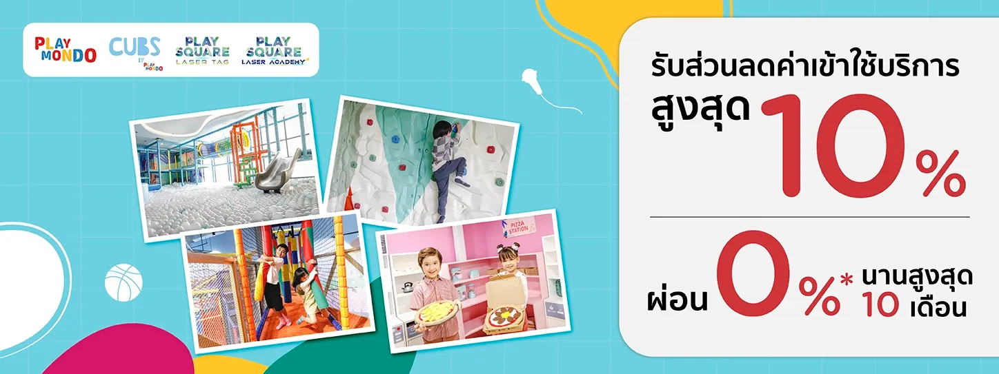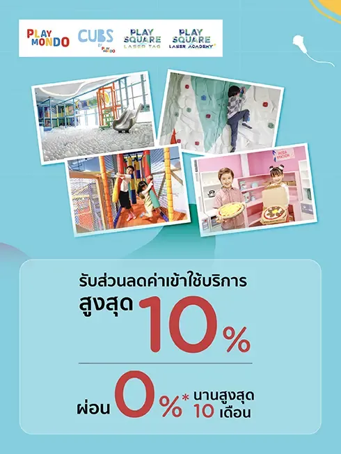 รับส่วนลด 10% สำหรับค่าบัตร Playsquareแบบ 3 เกม และแพ็คเกจบุฟเฟ่ต์ (unlimited games) เท่านั้น