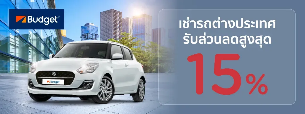รับส่วนลดสูงสุด 15% เมื่อจองรถเช่าต่างประเทศ ที่ Budget