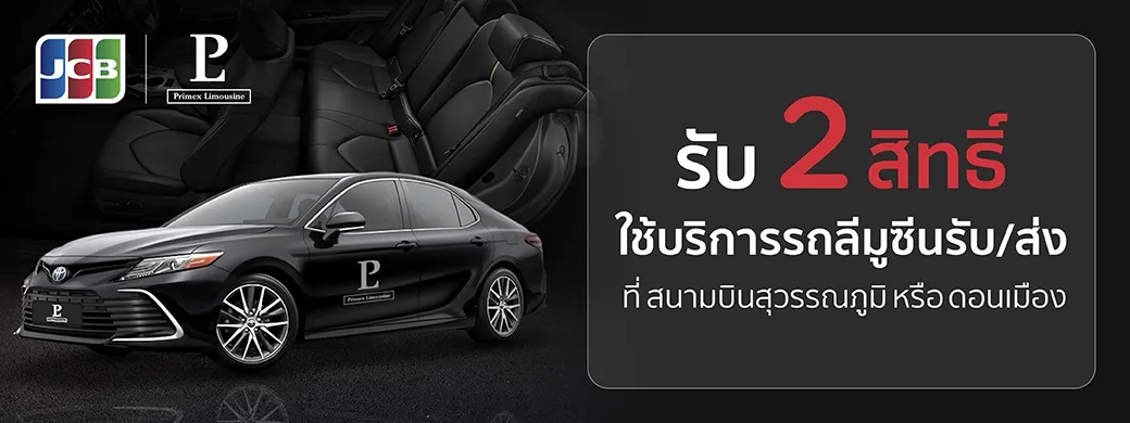 - ภายใต้ข้อกำหนดและเงื่อนไขในข้อ 5 เมื่อมียอดใช้จ่ายสะสมตั้งแต่วันที่ 1 มกราคม 2569 – 31 ธันวาคม 2569 ("ระยะเวลาใช้จ่ายสะสม") ตั้งแต่ 500,000 บาทขึ้นไป โดยคำนวณจากยอดใช้จ่ายของบัตรฯ ที่ลงทะเบียน ลูกค้าจะได้รับสิทธิใช้บริการรถลีมูซีนรับ/ส่งสนามบินสุวรรณภูมิหรือสนามบินดอนเมือง จำนวน 2 สิทธิ์ เมื่อได้รับรหัสที่ระบุไว้ในข้อ 6