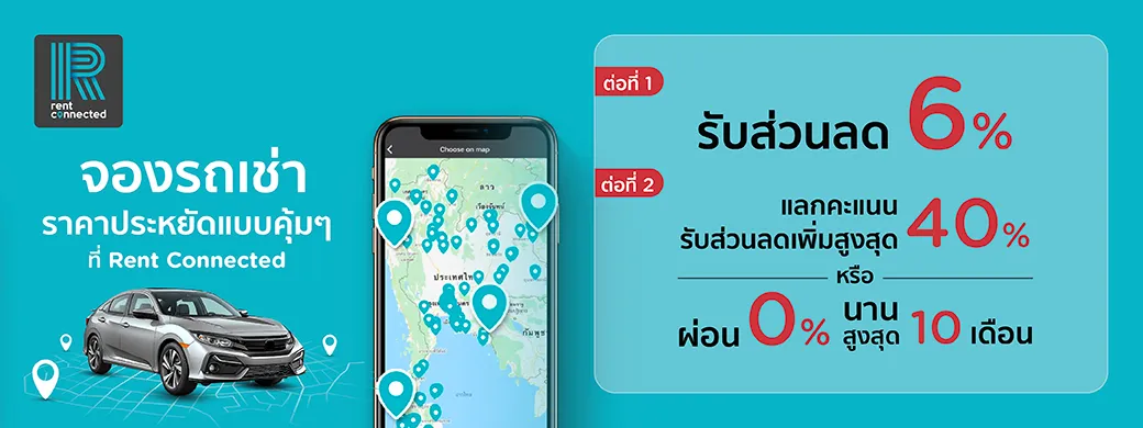 โปรโมชั่นจองรถเช่าราคาประหยัดสุดคุ้ม ที่ Rent Connected กับบัตรเครดิต KTC