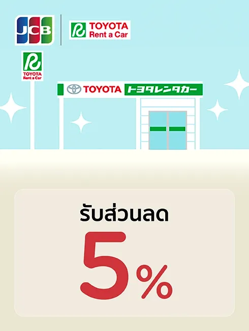 เมื่อจองรถเช่าที่ TOYOTA Rent a Car ผ่าน https://rent.toyota.co.jp/th/ และชำระผ่านบัตรเครดิต KTC JCB ทุกประเภท