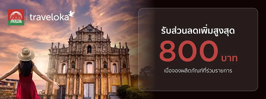 เมื่อจองเที่ยวบินที่พักและกิจกรรมที่ร่วมรายการบน Traveloka ในเส้นทางมาเก๊าขั้นต่ำ 6,000 บาท ต่อ 1 การจอง