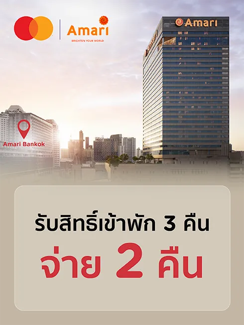 - สิทธิพิเศษนี้สามารถจองได้ผ่านลิงก์ด้านล่าง และต้องทำการจองและเข้าพักให้เสร็จสิ้นภายในวันที่ 31 ธันวาคม 2568 www.amari.com/mastercard