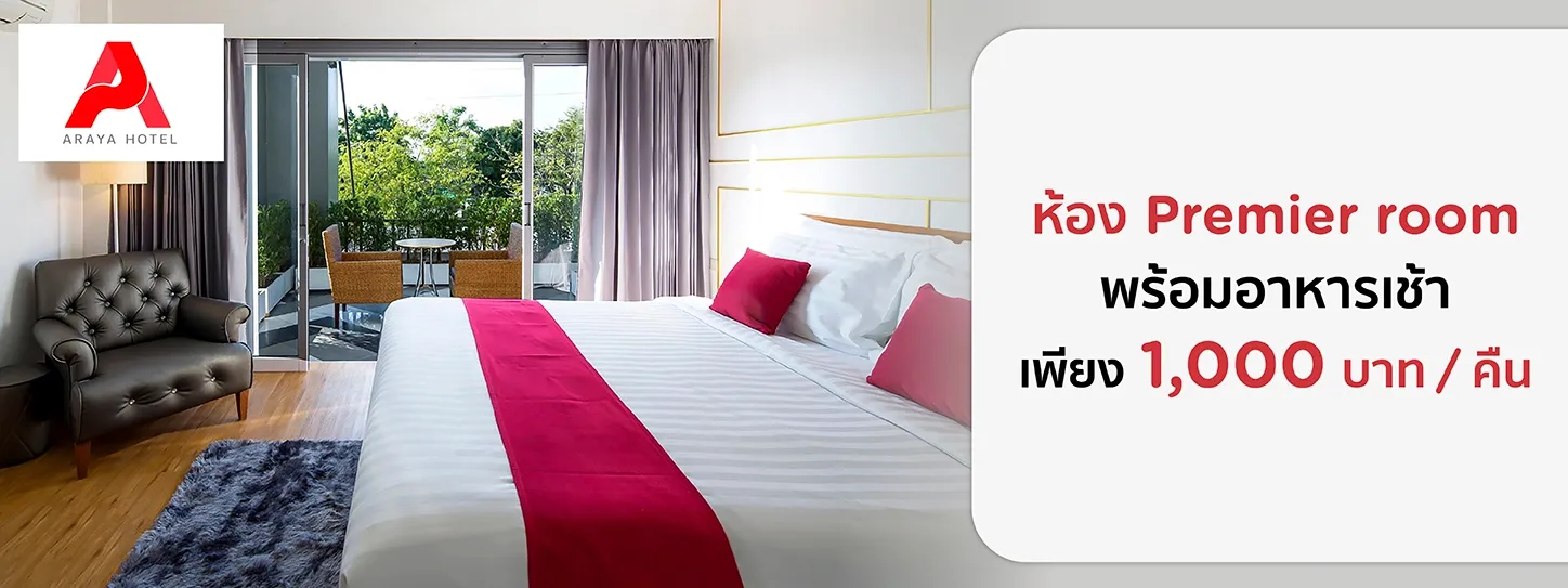 สอบถามรายละเอียดและสำรองห้องพักAraya Hotelโทร.065 161 6541Facebook:ARAYA HOTEL