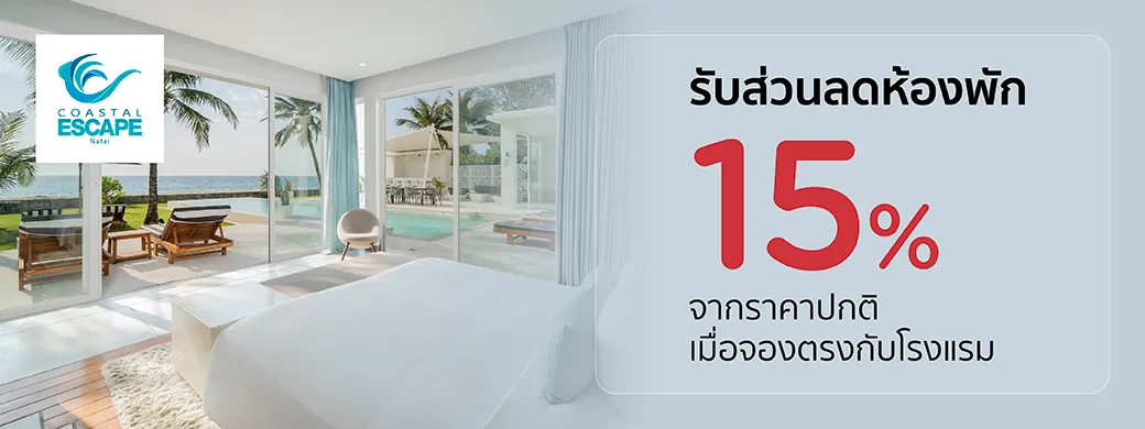 เมื่อจองตรงกับโรงแรมผ่านทางเว็บไซต์ www.coastalescapenatai.com