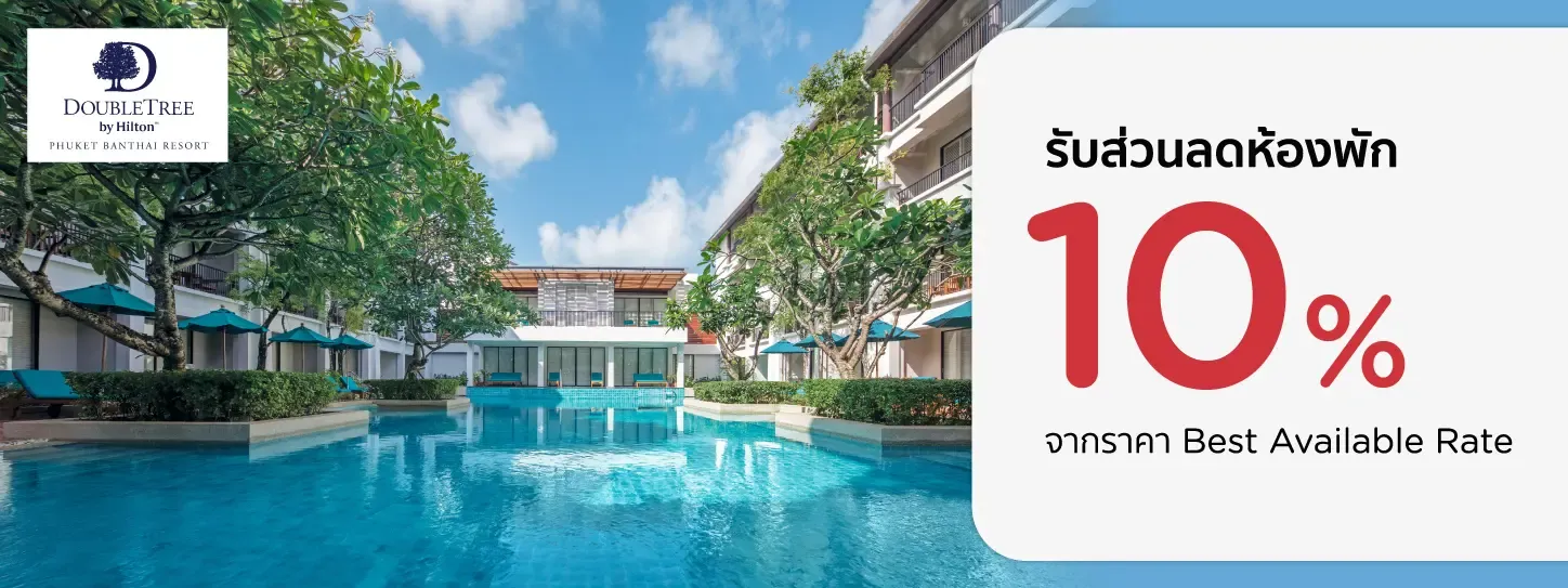 ใช้จ่ายที่โรงแรมที่ร่วมรายการ ทุกยอด ทุกรายการ ไม่จำกัดขั้นต่ำ สามารถใช้คะแนน KTC FOREVER จำนวนเท่าใดก็ได้ สูงสุดไม่เกินยอดใช้จ่าย/เซลส์สลิปเพื่อแลกรับเครดิตเงินคืน 13% จากจำนวนคะแนนที่แลก ลงทะเบียนแลกรับเครดิตเงินคืน คลิก ค้นพบโปรโมชั่นห้องพักสุดพิเศษอื่นๆ คลิก DoubleTree by Hilton Phuket Banthai Resort